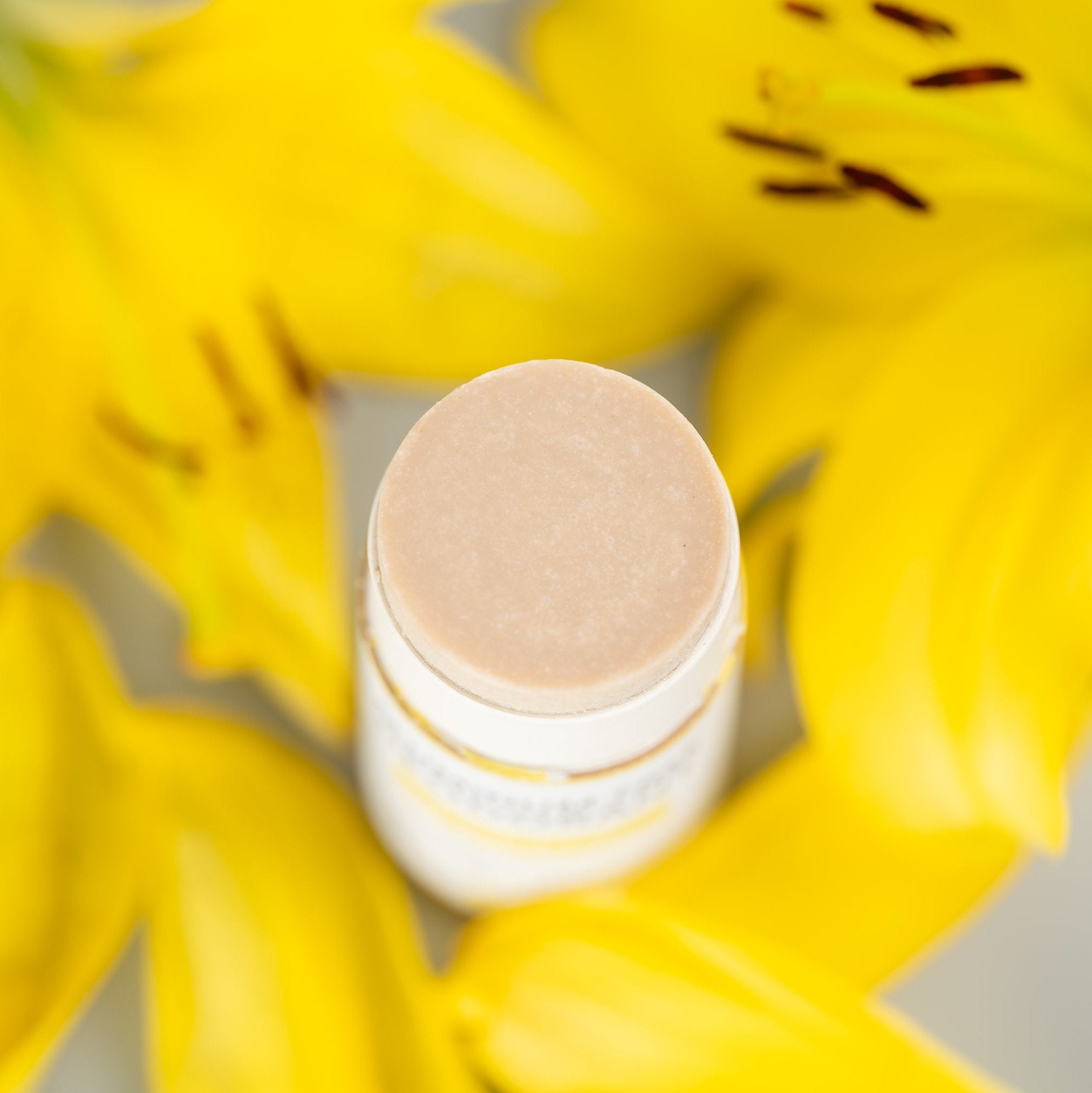 BASE INGREDIENTS: Coconut Oil, Arrowroot Powder, Sodium Bicarbonate, Shea Butter, Diatomaceous Earth, Candelilla Wax